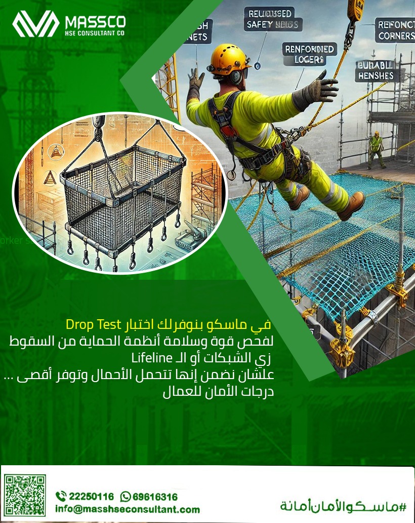 1. System Overview / نظرة عامة على النظام: A Horizontal Life-Line (HLL) is a safety system installed at height to protect personnel from falls. It consists of stainless steel cables or ropes, anchors, intermediate supports, tensioning devices, and harness attachment points. الخط الحياة الأفقي (HLL) هو نظام أمان يتم تركيبه على ارتفاع لحماية العاملين من السقوط، ويتكون من أسلاك أو حبال من الفولاذ المقاوم للصدأ، ونقاط تثبيت، ودعامات وسطية، وأجهزة شد، ونقاط ربط للأحزمة. 2. Design / التصميم: Purpose / الهدف: To provide a continuous, safe anchorage for workers at height. To comply with OSHA, EN 795, ISO 14567, ANSI Z359 standards. Scope / النطاق: Roofs, industrial platforms, walkways, and facades. Designed for max. 2–5 users per line, depending on span and anchors. Design Considerations / اعتبارات التصميم: Total system length, span between intermediate supports (max 6–8m typical). Anchor strength, material (galvanized or stainless steel). Load calculation including fall arrest forces, impact load, and safety factor. Environmental factors: wind, seismic load, snow, and corrosion. الاعتبارات: طول النظام والمسافة بين الدعامات (عادة 6–8 م). قوة نقاط التثبيت وموادها. حساب الأحمال الناتجة عن السقوط، الحمل التأثيري، ومعامل الأمان. عوامل البيئة: الرياح، الزلازل، الثلوج، والتآكل. 3. Installation / التركيب: Steps / خطوات التركيب: Site Survey / مسح الموقع: Determine optimal route, anchor points, and obstacles. Anchor Installation / تركيب المثبتات: Fix primary and intermediate anchors to structure per design. Cable / Rope Installation / تركيب الحبال: Run stainless steel cable or wire rope through anchors. Tensioning / الشد: Apply calculated tension using tensioning devices; check deflection limits. End Fittings & Hardware / تركيب الملحقات: Secure turnbuckles, clamps, and termination points. Marking & Signage / التعليمات التحذيرية: Post load limits, usage instructions, and warning signs. Safety During Installation / السلامة أثناء التركيب: Workers must wear full fall arrest harness. Use temporary scaffolding or MEWPs for high areas. Verify structural strength before installation. 4. Testing / الاختبار: Purpose / الهدف: Verify system integrity, tension, and anchor strength before use. Ensure compliance with EN 795 / ANSI Z359 / ISO 14567 standards. Testing Methods / طرق الاختبار: Visual Inspection / الفحص البصري: Check for corrosion, damage, or improper installation. Tension Test / اختبار الشد: Measure cable tension using calibrated load devices; ensure correct sag and tension. Pull-Out / Anchor Test / اختبار الشد للمثبتات: Apply rated pull force to each anchor and verify structural holding. Function Test / اختبار الأداء: Attach dummy load or test weight and simulate fall arrest; check system response and deflection. Frequency / التكرار: Initial test after installation. Annual inspection and retest, or after any fall incident. Acceptance Criteria / معايير القبول: No permanent deformation in anchors or cable. Tension within design limits. All hardware intact and properly installed. Maximum deflection within calculated values. 5. Documentation / التوثيق: Design Drawings / مخططات التصميم: Route, anchors, tension values, calculations. Installation Report / تقرير التركيب: Date, installer, deviations, pictures. Testing Report / تقرير الاختبار: Tension readings, pull-out results, pass/fail, inspector signature. 💡 Notes: HLL systems are intended only for fall arrest, not for lifting loads. Users must always wear a compatible harness and shock-absorbing lanyard. Regular maintenance and inspection are mandatory to maintain safety.